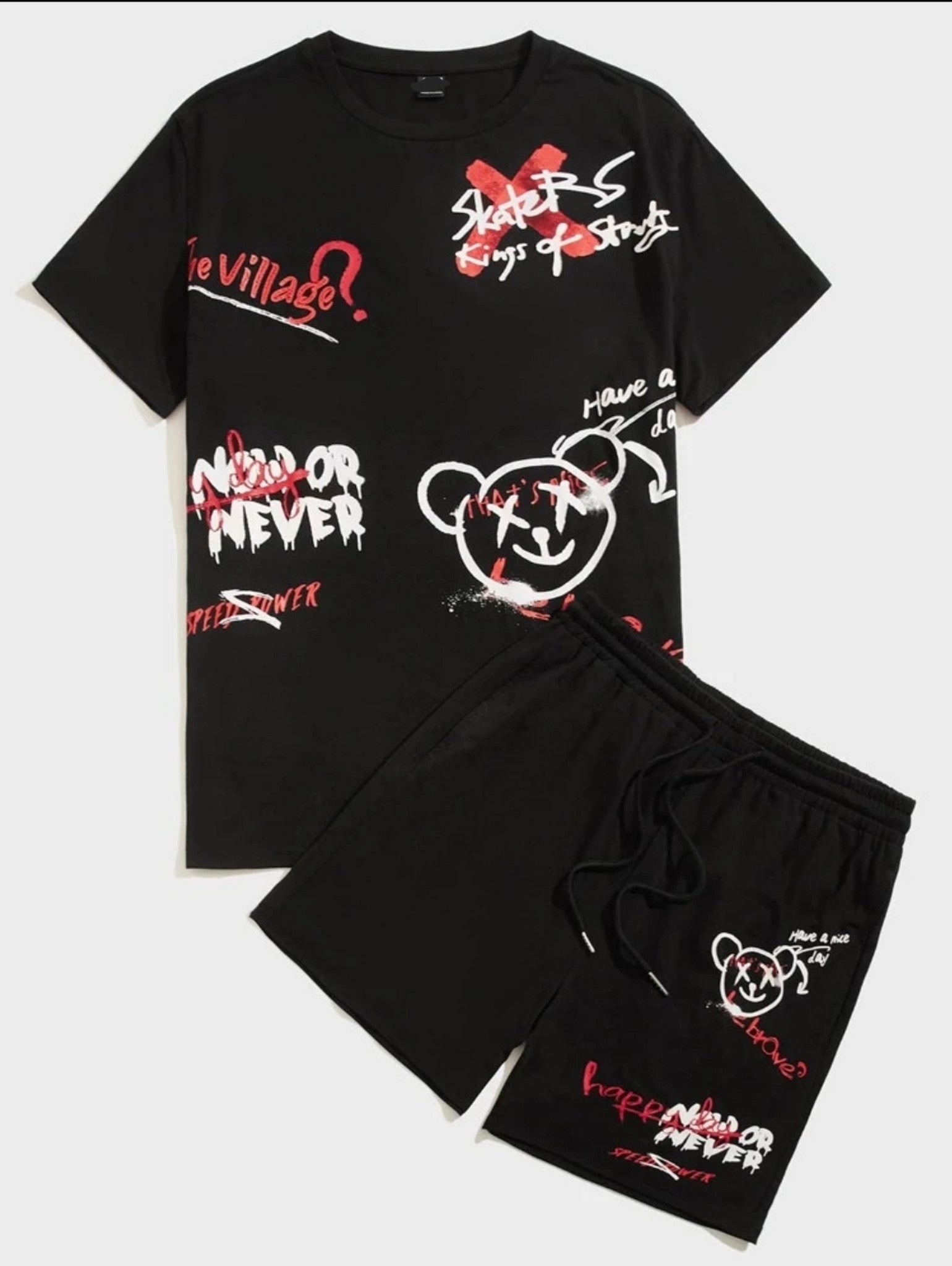 This set is made of cotton rich fabric. It includes a tshirt and shorts.